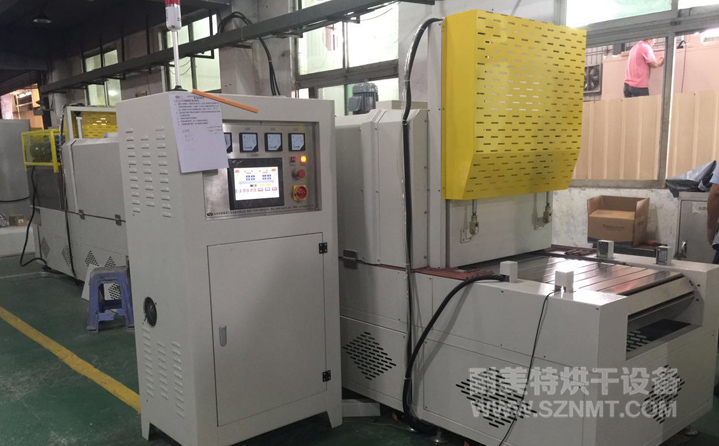 烘干部分總長4800mm,前后配自動(dòng)提升門,緩沖區(qū)兩端各長300mm,冷卻區(qū)長1200mm, 進(jìn)料部分長600mm,出料部分升降接駁臺(tái)長700mm ;